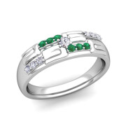 Checkerboard Emerald and Diamond Wedding Ring in 14k Gold, 5.25mm