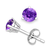 Amethyst Stud Earrings in 14k Gold 3 Prong Martini Studs, 6mm