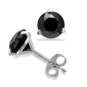 Natural Black Spinel Stud Earrings in 10k White Gold Studs, 1.60 cttw, 6mm