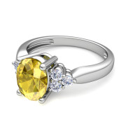 Three Stone Diamond and Yellow Sapphire Engagement Ring in 14k Gold, 8x6mm