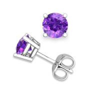 Amethyst Stud Earrings in 14k Gold 4 Prong Studs, 6mm