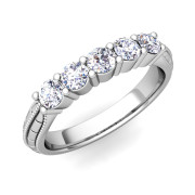 Milgrain Diamond Wedding Band in 14k Gold 5 Stone Ring, 3mm