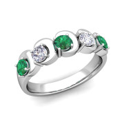 Organica 5 Stone Diamond and Emerald Wedding Band in 14k Gold, 5.5mm