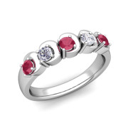 Organica 5 Stone Diamond and Ruby Wedding Ring in 14k Gold, 3.5mm