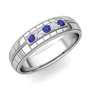 Sapphire and Diamond Mens Wedding Band in 14k Gold 5 Stone Ring, 5mm