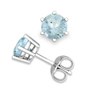 Aquamarine Stud Earrings in 14k Gold 6 Prong Studs, 5mm