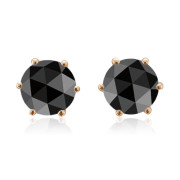 Rose Cut Black Spinel Stud Earrings in 14k Rose Gold Studs, 1.80 cttw, 6mm