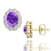 Oval Amethyst and Halo Diamond Earrings in 18k Gold, 7x5mm Studs