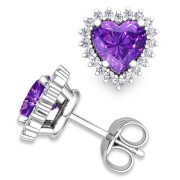 Diamond and Amethyst Earrings in 14k Gold Heart Earring Studs, 5x5mm