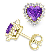 Diamond and Amethyst Earrings in 18k Gold Heart Earring Studs, 5x5mm