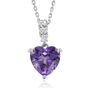 Heart Amethyst Necklace with 3 Stone Diamond Pendant in 14K White Gold