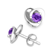 Petal Heart Amethyst Stud Earrings in 14k Gold, 4x4mm