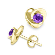 Petal Heart Amethyst Stud Earrings in 18k Gold, 4x4mm