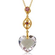 Amethyst and Pink Tourmaline Heart Pendant with 10k Rose Gold Chain, 6.54 cttw