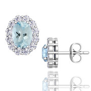 Oval Aquamarine and Halo Diamond Earrings in 14k Gold, 7x5mm Studs