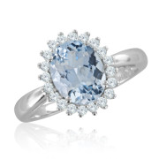 Diamond and Aquamarine Ring in 14k White Gold Halo Ring (H, SI2, 1.68 cttw)