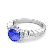 Bezel Set Diamond and Ceylon Sapphire Halo Engagement Ring in Platinum, 5mm