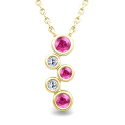 Bubble Diamond and Pink Sapphire Necklace in 18k Gold 5 Stone Pendant