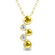 Bubble Diamond and Yellow Sapphire Necklace in 18k Gold 5 Stone Pendant
