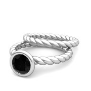 Bezel Set Black Diamond Ring and Rope Wedding Band Bridal Set in Platinum, 5mm