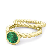 Bezel Set Emerald Ring and Rope Wedding Band Bridal Set in 18k Gold, 6mm
