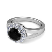 Black and White Diamond Halo Engagement Ring in Platinum, 7mm