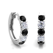 5 Stone Black and White Diamond Hoop Earrings in 14k Gold Hoops