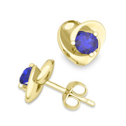Petal Heart Sapphire Stud Earrings in 18k Gold, 4x4mm