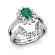 Diamond and Emerald Diana Engagement Ring Bridal Set in Platinum, 8x6mm