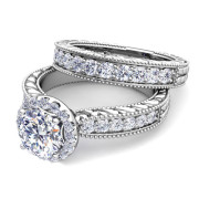 Vintage Inspired Diamond Engagement Ring Bridal Set in Platinum