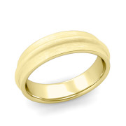 Ridged Wedding Band in 18k Gold Brushed Finish Comfort Fit Band, 6mm