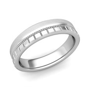 Milgrain and Brick Wedding Ring in 14k Gold Comfort Fit Band, Mixed Brushed Finish, 5mm