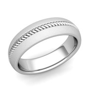 Cable Comfort Fit Wedding Band Ring in 14k Gold, Mixed Brushed Finish, 6mm