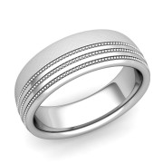 Milgrain Dome Wedding Ring in 14k Gold Comfort Fit Band, Mixed Brushed Finish, 7mm