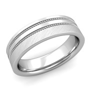 Double Milgrain Wedding Ring in 14k Gold Comfort Fit Band, Mixed Brushed Finish, 6mm