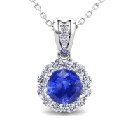 Custom Diamond and Gemstone Pendant in 14k, 18k Gold Halo Necklace 6mm