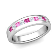 Build Channel Set Wedding Ring Band with Princess Cut Diamonds and Gemstones
