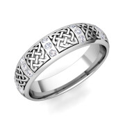 Diamond Wedding Ring in 14k Gold Celtic Knot Wedding Band, 6mm