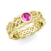 Solitaire Pink Sapphire Ring in 18k Gold Celtic Knot Wedding Band, 6.5mm