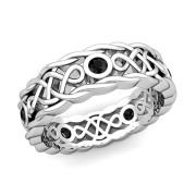 Brilliant Black Diamond Ring in 14k Gold Celtic Knot Wedding Band, 7mm