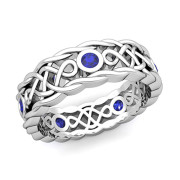 Brilliant Sapphire Ring in 14k Gold Celtic Knot Wedding Band, 7mm