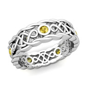 Brilliant Yellow Sapphire Ring in Platinum Celtic Knot Wedding Band, 7mm