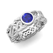Solitaire Sapphire Ring in Platinum Celtic Knot Wedding Band, 5.5mm