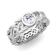 Solitaire Diamond Ring in 14k Gold Celtic Knot Wedding Band, 5.5mm