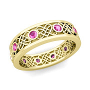 Celtic Heart Knot Wedding Band in 18k Gold Bezel Set Pink Sapphire Ring, 6mm
