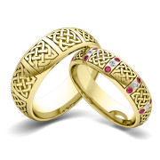 Matching Wedding Band in 18k Gold Diamond and Ruby Celtic Wedding Ring