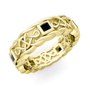 Princess Cut Black Diamond Ring in 18k Gold Celtic Knot Wedding Band, 5mm