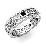 Princess Cut Black Diamond Ring in Platinum Celtic Knot Wedding Band, 5mm
