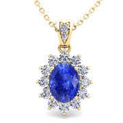 Diamond and Ceylon Sapphire Necklace in 18k Gold Halo Pendant 8x6mm