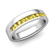 Channel Set Mens Comfort Fit Yellow Sapphire Wedding Band in 14k Gold, 5mm